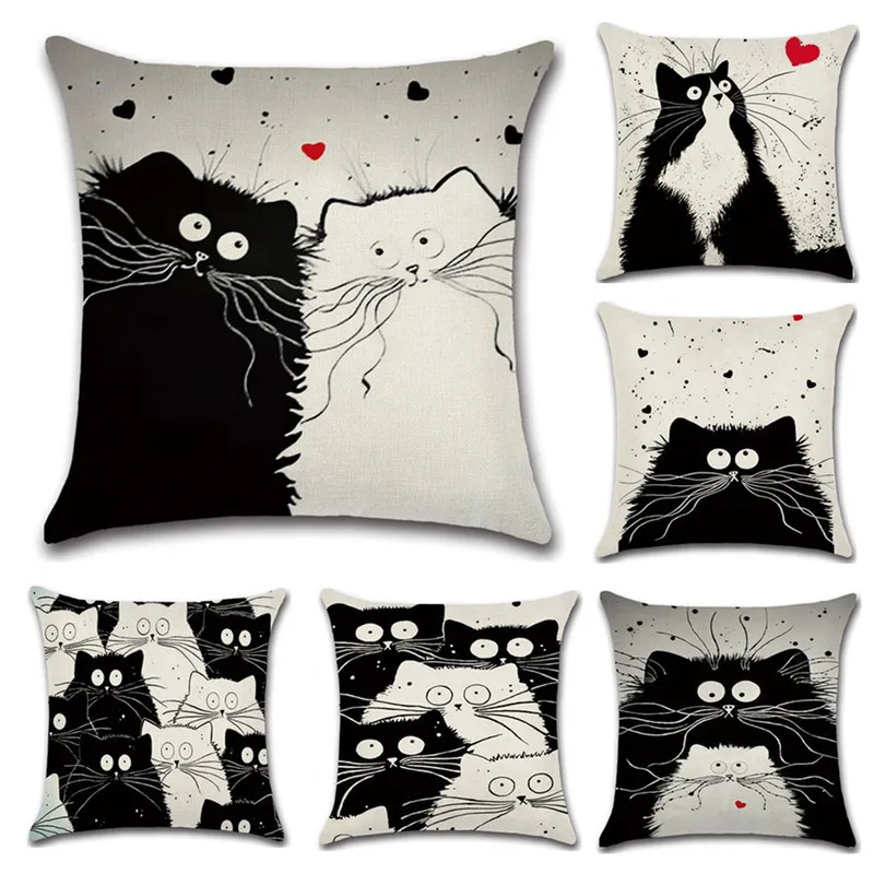 Us 2 94 41 Off Personalise Cute Cat Pillowcase Black White Cartoon Cats Poszewki Na Poduszk Square Cushion Pillow Cover For Bedroom Office Use In