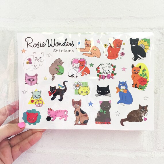 Stickers Cute Cat Stickers Kitty Cats Cat Lover Sticker Sheet A5 Sticker Sheet Illustrated Stickers