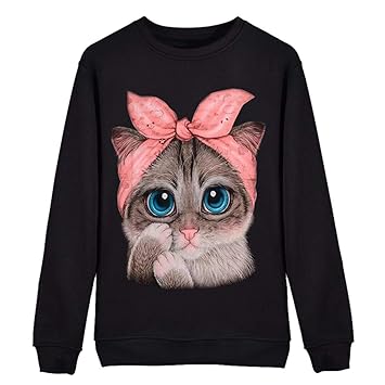 Womens Crew Pullovers Long Sleeve Casual Cute Cat Printed Loose Sweatshirt Sweater Tops Blouse Shirt Autumn Winter Clothes