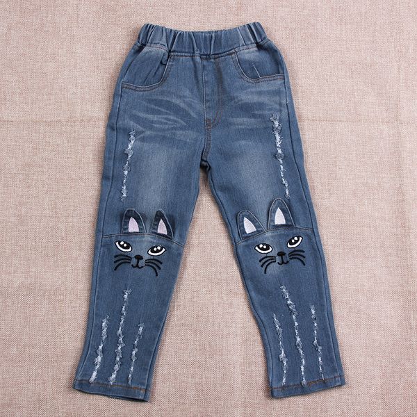 Jeans For Children Girls 2019 Spring Autumn Embroider Denim Pants Cute Cat Slim Fit Blue Leggings For 2 8 Years Toddler Kids