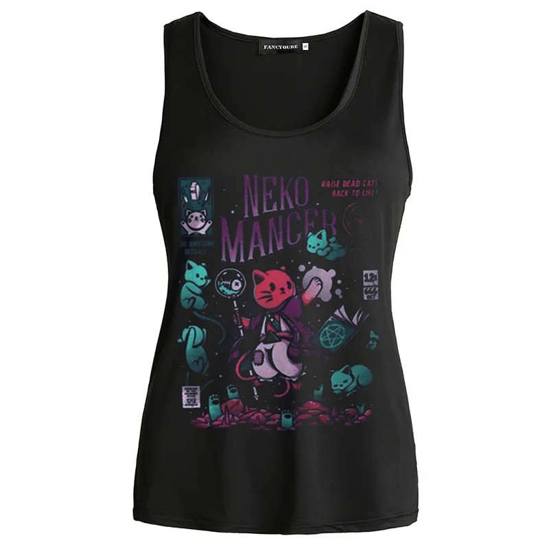 Harajuku Tanks Women Cute Cat Aesthetic Grunge Black Tee