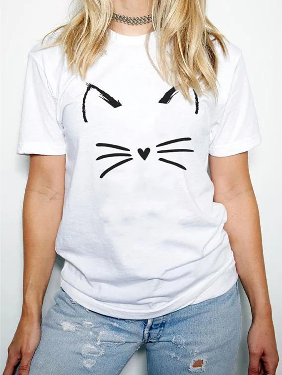 Cute Cat Printing T Shrit Funny Animal Tee Aesthetic Fashion