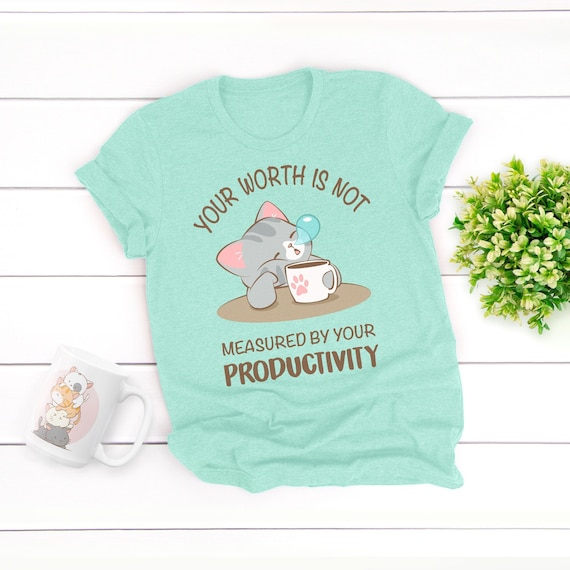 Cute Cat Kawaii Shirt Pastel Aesthetic Kawaii Clothing With Funny Saying Your Worth Is Not Measured By Your Productivity