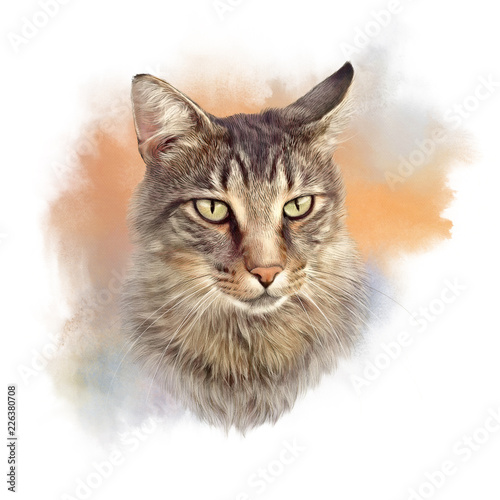 Cute Cat Watercolor Portrait Cat Drawing Stock Illustration