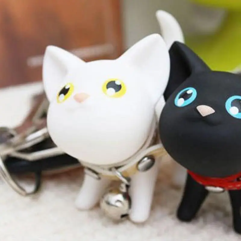 Cute Black Cat Key Chain Cute White Kitty Keyring
