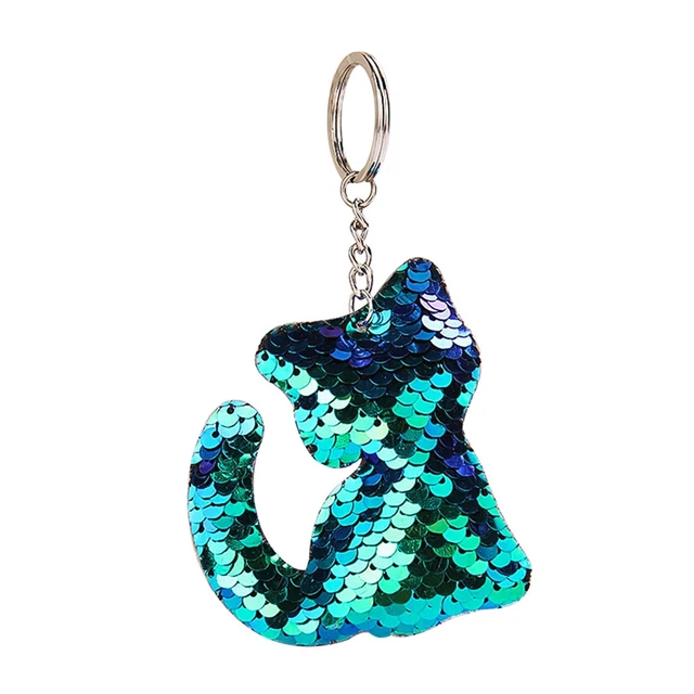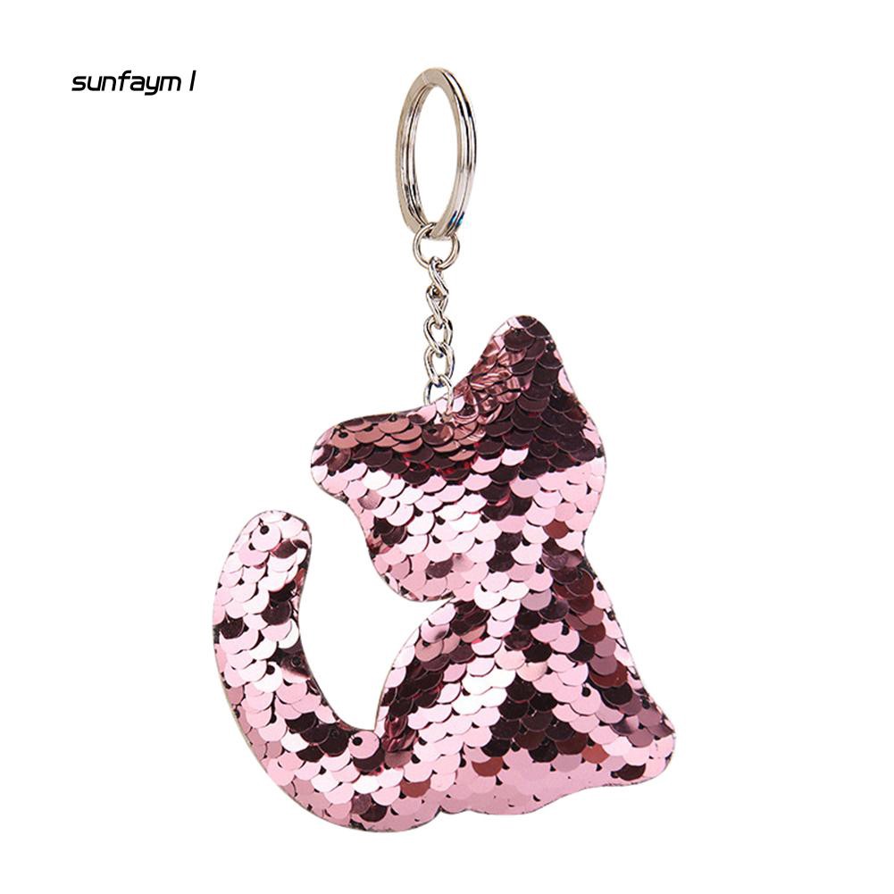 Sufm Cute Cat Kitten Sequin Keychain Key Ring Decoration Car Tote Handbag Pendant