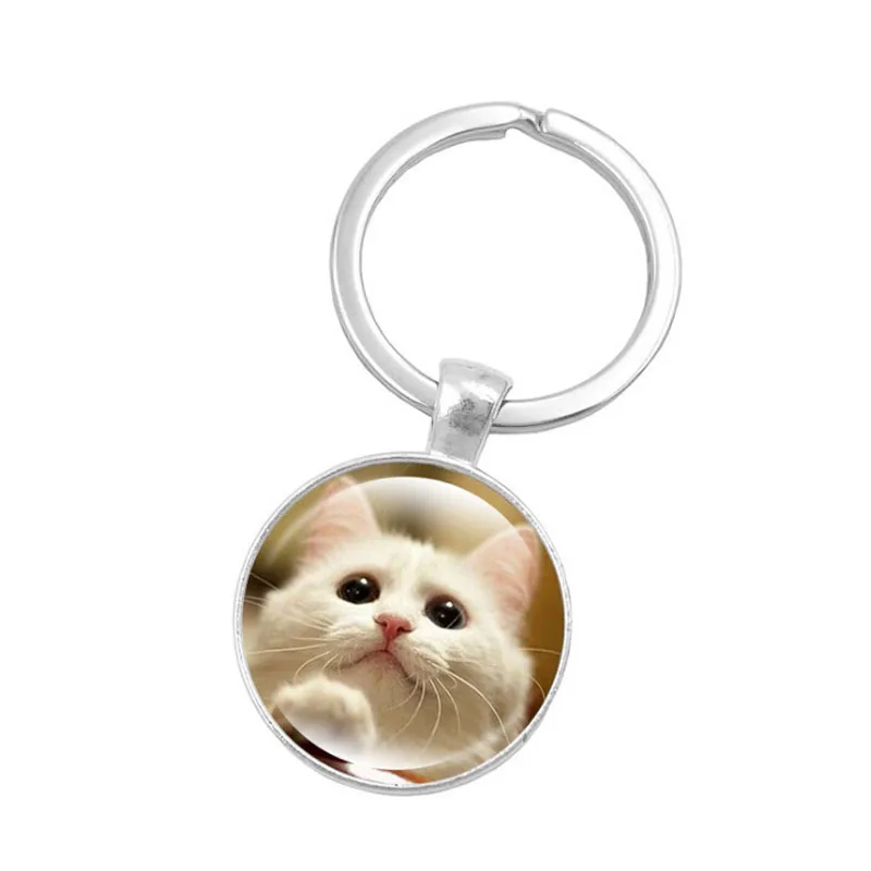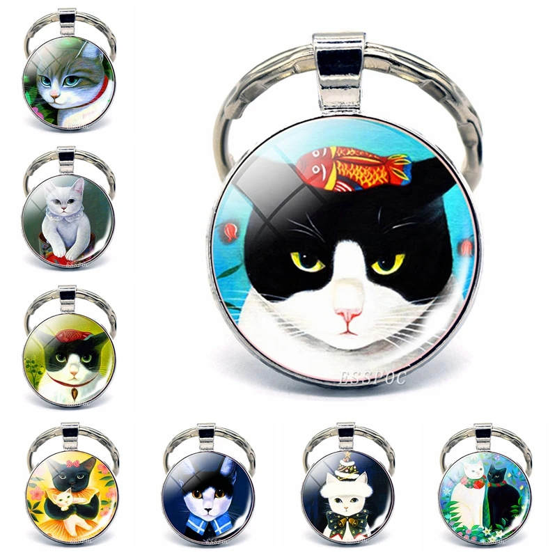 Us 0 9 55 Off Cartoon Cat Keychain Cute Cat Picture Glass Cabochon Metal Key Chain Fashion Accessories Handcraft Gift For Daughter Little Girl In