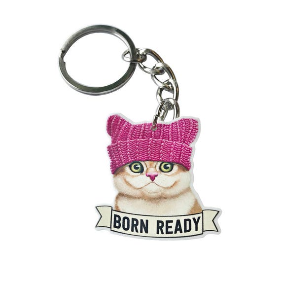 Cute Cat Keychain Kitty Cat Hat Keyring Born Ready Cat Charm Quirky Cat Gift Pink Hat Cat Keyring Cat Person Gift Funny Cat Hat