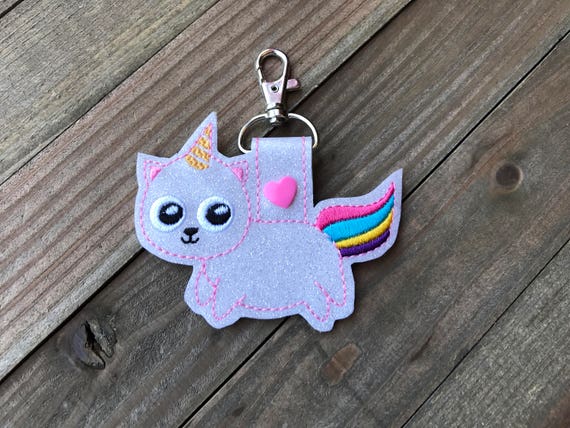 Cat Keychain Caticorn Key Chain Cute Cat Unicorn Zipper Pull Caticorn Bag Tag Kittie Unicorn Keychain Sparkly Caticorn