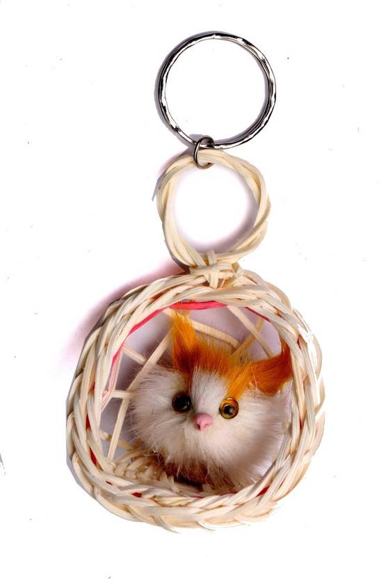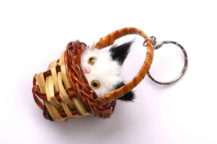 Anishop Cute Cat In Basket Key Chain Beige Multipurpose Keychain For Car Bike Cycle And Home Keys