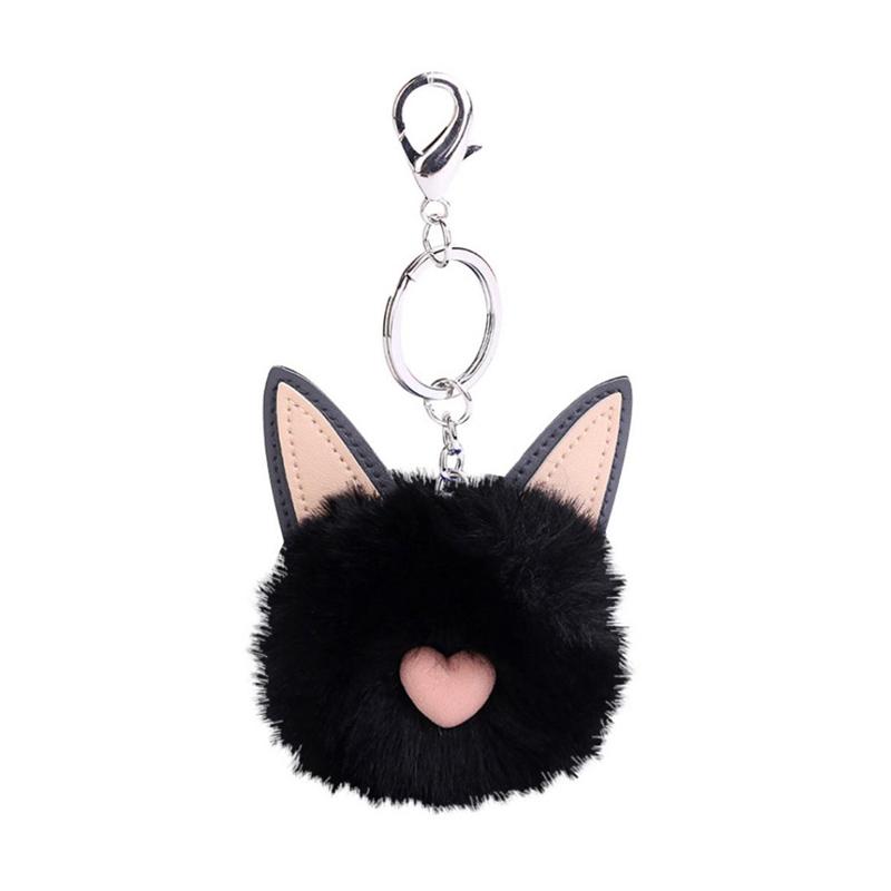 Naladoo 8cm Cute Cat Keychain Pendant Women Key Ring Holder Pompoms Key Chains Black